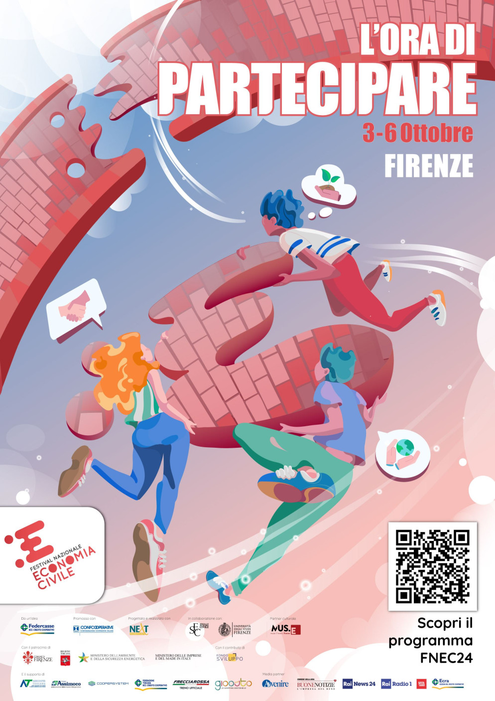Partecipazione, sviluppo sostenibile, cittadinanza attiva caratterizzeranno la nuova edizione del festival nazionale di economia civile, che si è dato come titolo “L’ora di partecipare”: come a sottolineare, se necessario, che il nostro coinvolgimento attivo e collaborativo è la condizione fondamentale per far crescere in modo sostenibile il nostro pianeta. Questa sesta edizione del Fnec si svolgerà a Firenze dal 3 al 6 ottobre: la giornata iniziale, grazie alla collaborazione con l'Ateneo di Firenze, si svolgerà al Polo universitario di Novoli con la partecipazione di tantissimi studenti impegnati in percorsi di progettazione condivisi, per poi proseguire nei giorni seguenti con tavole rotonde ed esibizioni nel Salone dei 500 a Palazzo Vecchio. « Partecipare non significa soltanto votare, ma anche adottare stili di vita sostenibili, di consumo e risparmio responsabile, impegnarsi per la comunità e alimentare quei corpi sociali oggi più che mai baluardo di quel “noi”, di quell’essere collettivo che è la società e che rischia di perdersi all’interno dell’individualismo imperante » ha spiegato il comitato organizzatore del festival fiorentino di economia civile.
