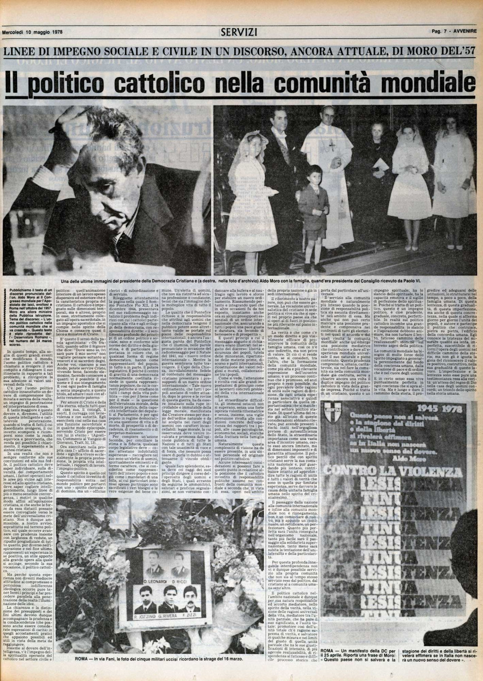Il dolore della famiglia nella terza pagina di Avvenire del 10 maggio 1978