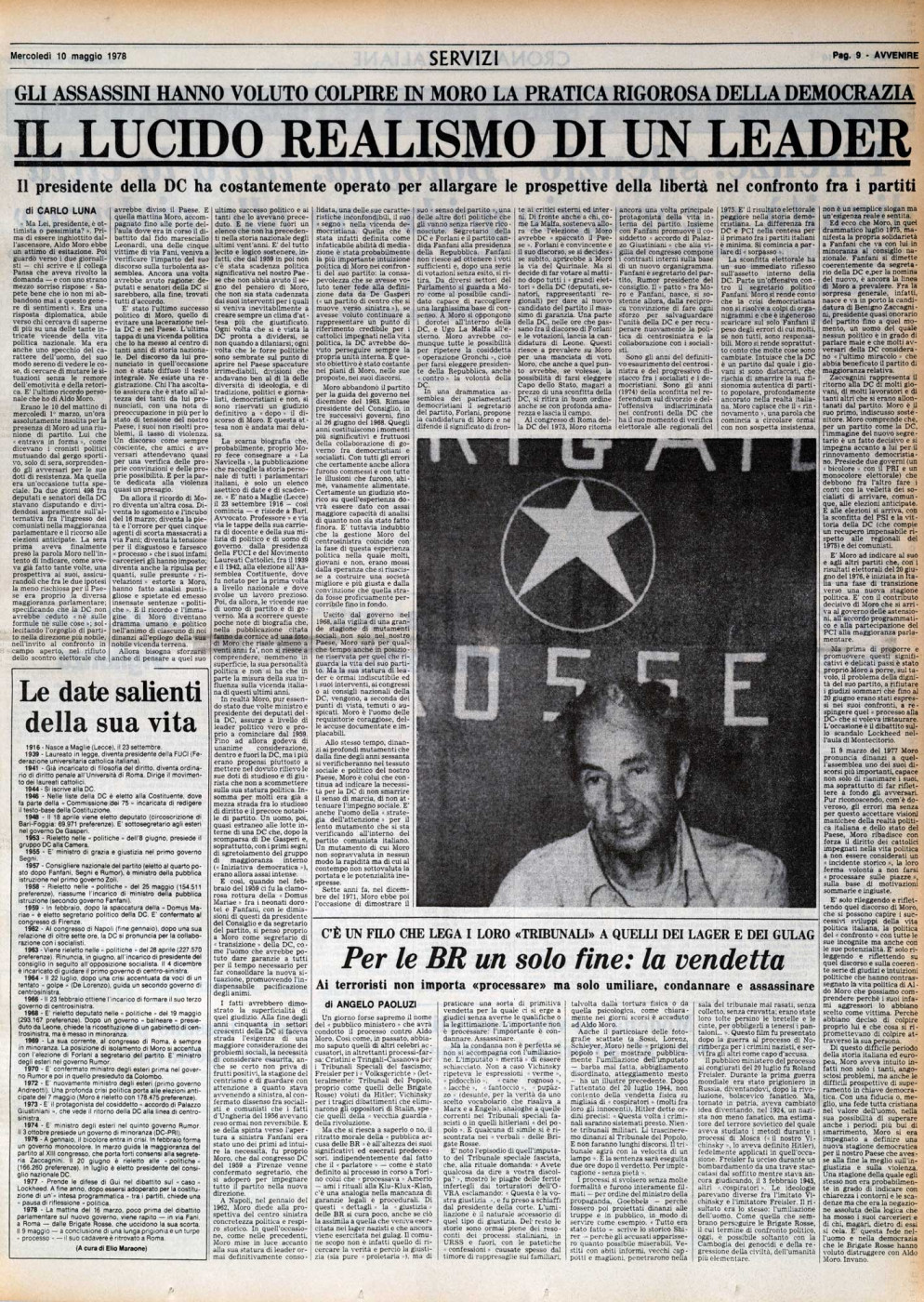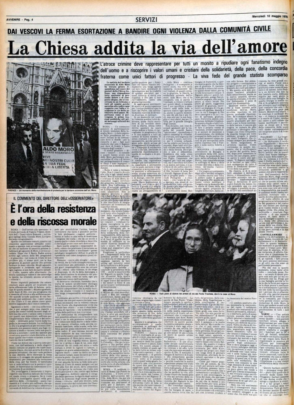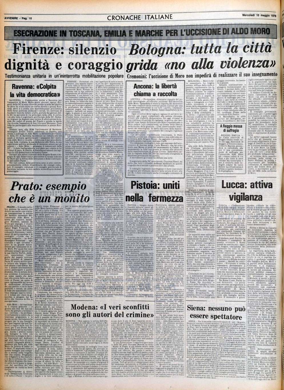 La prima pagina di Avvenire del 10 maggio 1978