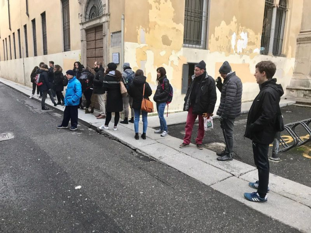 Alle 8.30, in anticipo di mezz’ora dall’orario di apertura, la studentessa Daria Parenti è la prima a schierarsi di fronte al portone in legno: “Bisogna sbrigarsi, altrimenti non si trova un posto a sedere”. Dietro di lei, in poco tempo, si accalcano altri trenta giovani in trepidante attesa per accaparrarsi uno spazio. Non è il concerto di qualche rapper o l’inaugurazione di un locale serale, ma la consueta coda del sabato mattina fuori dalla Biblioteca Passerini-Landi in centro storico a Piacenza. “Frequento l’università di Bologna – conferma Sofia Digeronimo -, alcuni amici mi hanno consigliato di venire qua prima dell’apertura per riuscire ad assicurarmi un tavolo”. La studentessa Maria Rossi rincara la dose: “Alla Passerini-Landi non ci sono abbastanza posti rispetto a tutti ragazzi che la popolano. È uno splendido ambiente, sarebbe bello godere di un’apertura serale come succede in altre città”.