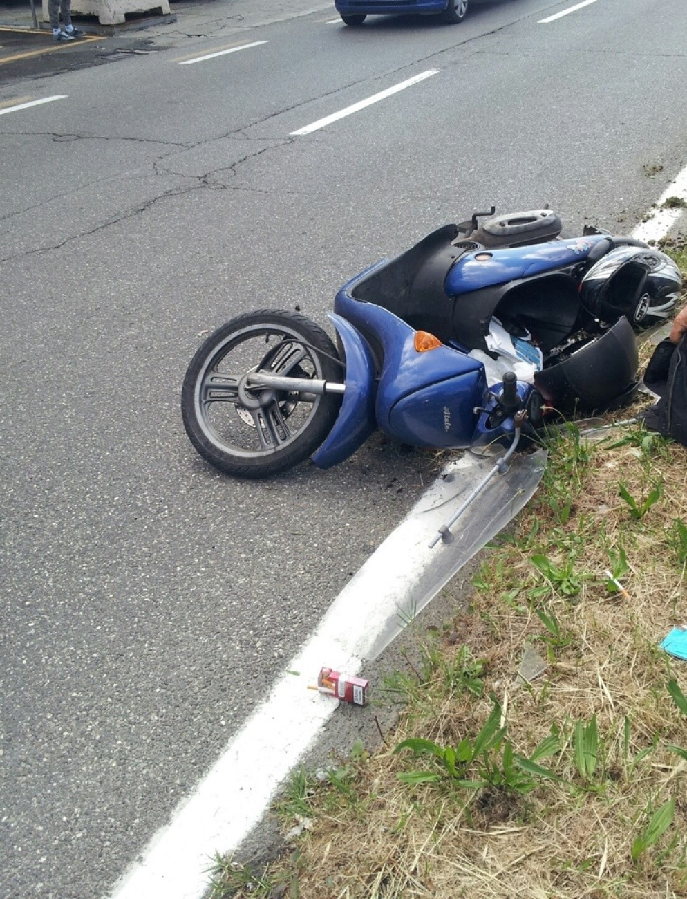 Incidente stradale in via Emilia Pavese: lo scooter finisce nell'aiuola