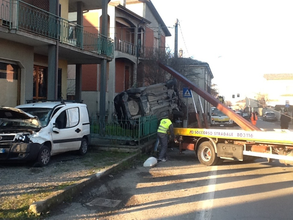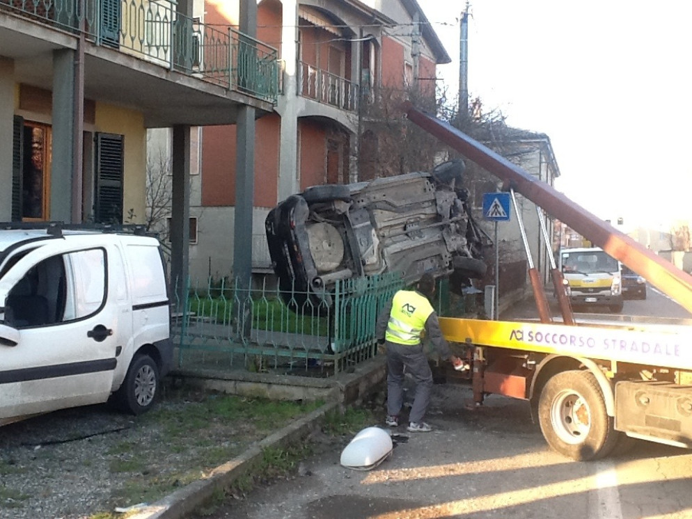 Incidente nel primo pomeriggio a Casaliggio, frazione del comune di Gragnano; secondo le prime informazioni un automobilista, per cause ancora in corso di accertamento, ha perso il controllo del veicolo che è andato a sbattere contro un lampione e poi si è ribaltato, finendo fuori strada, nel giardino di una palazzina. Nella carambola l’automobile ha urtato un furgone posteggiato lungo la strada.