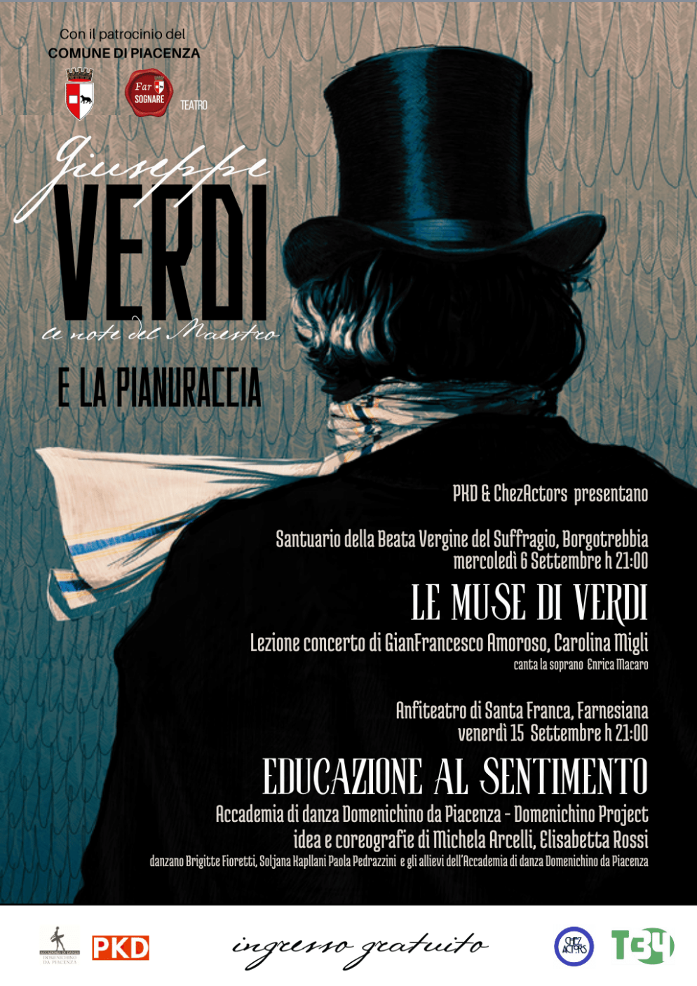 Intanto Piacenza punta su piccoli appuntamenti di periferia per ricordare alla collettività le origini di GiuseppeVerdi. Ecco la rassegna “Le note del Maestro e la Pianuraccia”, due serate dedicate alla figura del compositore, il 6 settembre nel Santuario della Beata Vergine del Suffragio a Borgotrebbia con “Le muse di Verdi” e il 15 settembre nella chiesa di Santa Franca alla Farnesiana con “Educazione al sentimento”. Gli spettacoli sono in programma alle 21, con l’intento di valorizzare la musica dell’artista e raccontarne la vita dei personaggi femminili delle sue opere in modo facile e fruibile, a un pubblico di ogni età. L’iniziativa è organizzata da Piacenza Kultur Dom, ChezActors e Accademia di Danza Domenichino.