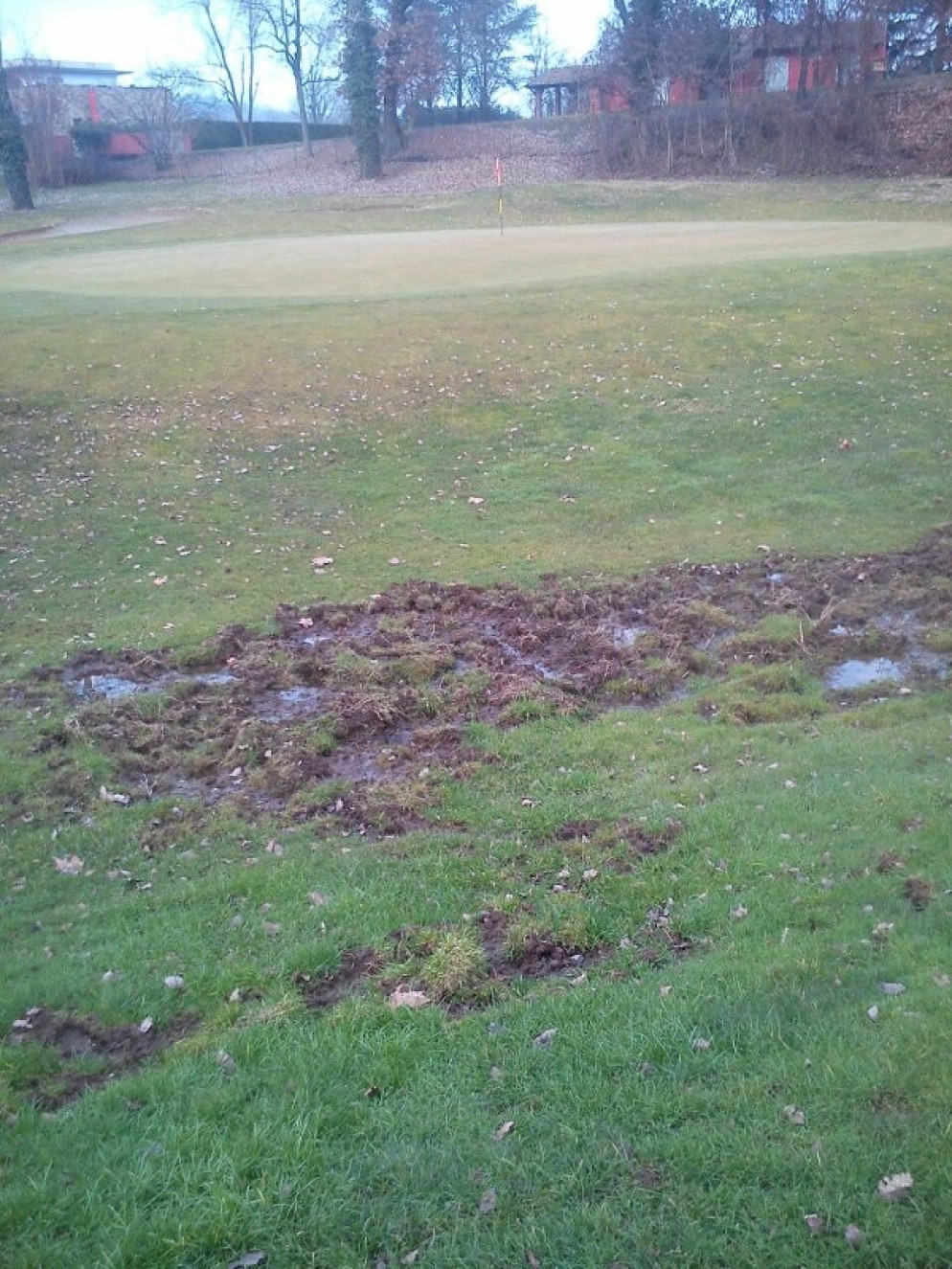 Non solo le colture, ora anche i campi da golf divengono teatro delle scorribande dei cinghiali. A Croara, parte del percorso del locale Country Club ha fatto segnare un’incursione da parte di un branco di ungulati che ha letteralmente devastato il prato inglese, mettendo fuori uso due delle 18 buche che fanno parte dello splendido impianto immerso nel verde delle colline tra valtrebbia e valluretta.