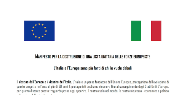 Oggi dunque non si tratta di preservare l’Europa che c’è, ma di rifondarla per riaffermare i valori dell’umanesimo liberale e sociale in un mondo profondamente diverso rispetto a quello che abbiamo vissuto negli ultimi trent’anni”. A questo dunque serve una lista unitaria. A combattere “l’internazionale sovranista e i governi che perseguono modelli di democrazia illiberale”. Per questo “è necessario che si costruisca alle prossime elezioni europee una lista unitaria delle forze civiche e politiche che si riconoscono nelle grandi famiglie politiche europee. La sfida sarà vinta solo se i promotori di questo fronte sapranno coinvolgere la maggioranza relativa dei cittadini italiani, mobilitando la società civile, le associazioni, le liste civiche, il mondo del lavoro, della produzione, delle professioni, della cultura e della scienza e aprendo le liste elettorali anche a loro qualificati rappresentanti”.