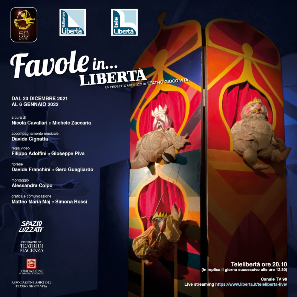 In occasione delle feste natalizie, visto il successo dello scorso anno, con Teatro Gioco Vita e Telelibertà nuova edizione di “Favole in Libertà”. Riprende così il viaggio nel mondo incantato delle fiabe e dei racconti della tradizione, dedicato in modo particolare ai bambini e alle famiglie. Si inizia l’ultimo giorno di scuola prima delle vacanze per proseguire quotidianamente fino all’Epifania, il giorno che – per usare un detto popolare – “tutte le feste si porta via”. “Favole in Libertà” prevede 15 appuntamenti che andranno in onda a partire da giovedì 23 dicembre alle ore 20.10, con replica il giorno successivo alle ore 12.30. Canale Tv 98, in live streaming sul sito www.liberta.it.