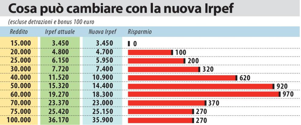 Degli 8 miliardi previsti in manovra per il taglio delle tasse, questo intervento sull'Irpef ne assorbirebbe 7.