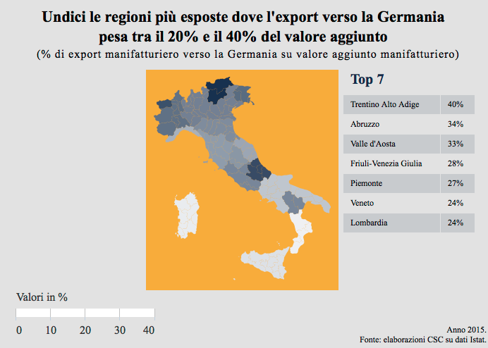 Come si nota dalle infografiche in basso elaborate per il Foglio dal Centro studi di Confindustria, la Germania è il primo partner commerciale per l’Italia con una quota di esportazioni pari al 12,5 per cento sul totale mondiale.