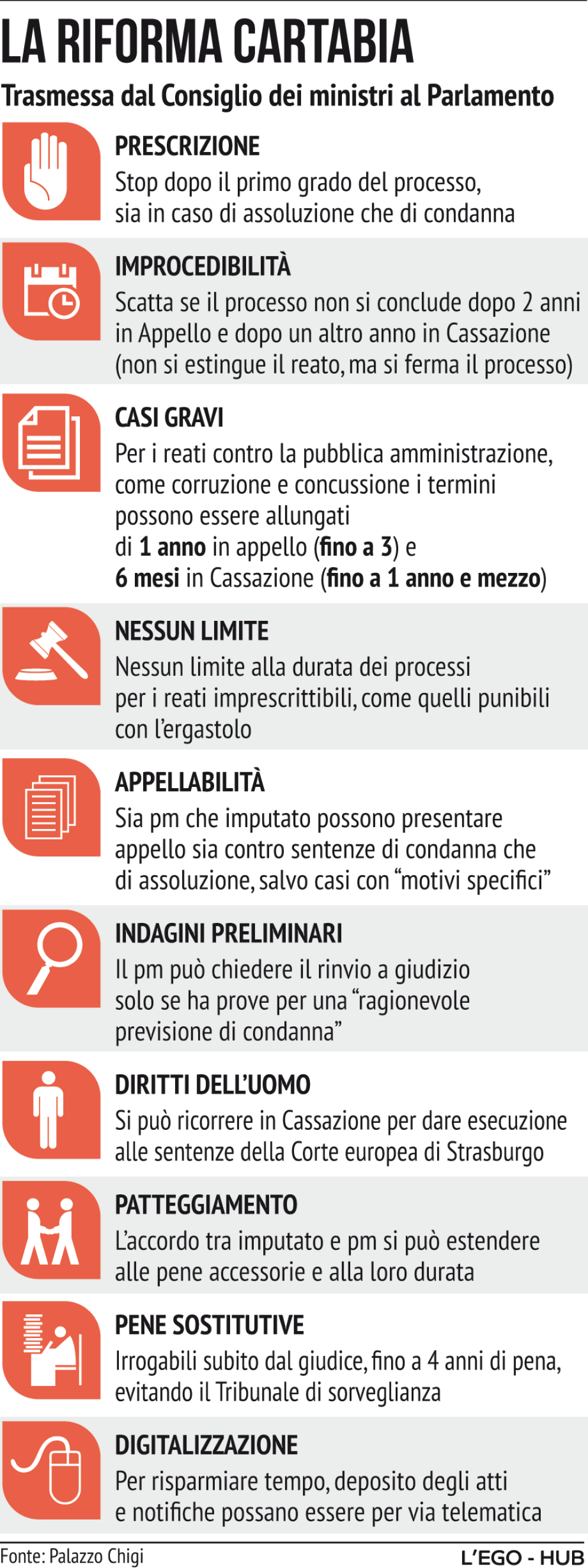 Ecco cosa prevede il testo del governo e di CartabiaDalla prescrizione all'appello e dalle indagini preliminari alle misure alternative. Ecco i punti della riforma del processo penale elaborata dalla ministra della Giustizia, approvata in CdmJuly 28, 2021 | DI Redazione Online