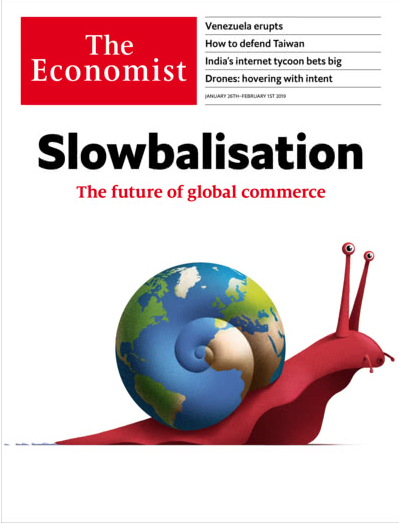 "Slowbalisation": la copertina dell'ultima edizione dell'Economist sul rallentamento del commercio globale