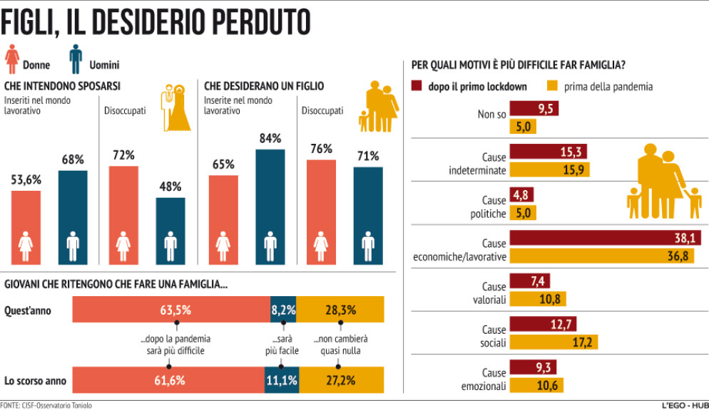 E, tra le donne laureate, osservano ancora i due esperti «le intenzioni generative sono più basse rispetto a quelle che non lo sono, 63,9% contro il 76,7».