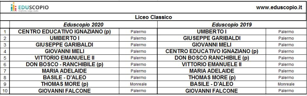 Anche a Palermo il liceo classico migliore è paritario. Si tratta del “Centro educativo ignaziano”, con il “Don Bosco-Ranchibile” al sesto posto e il “Thomas More” al nono.