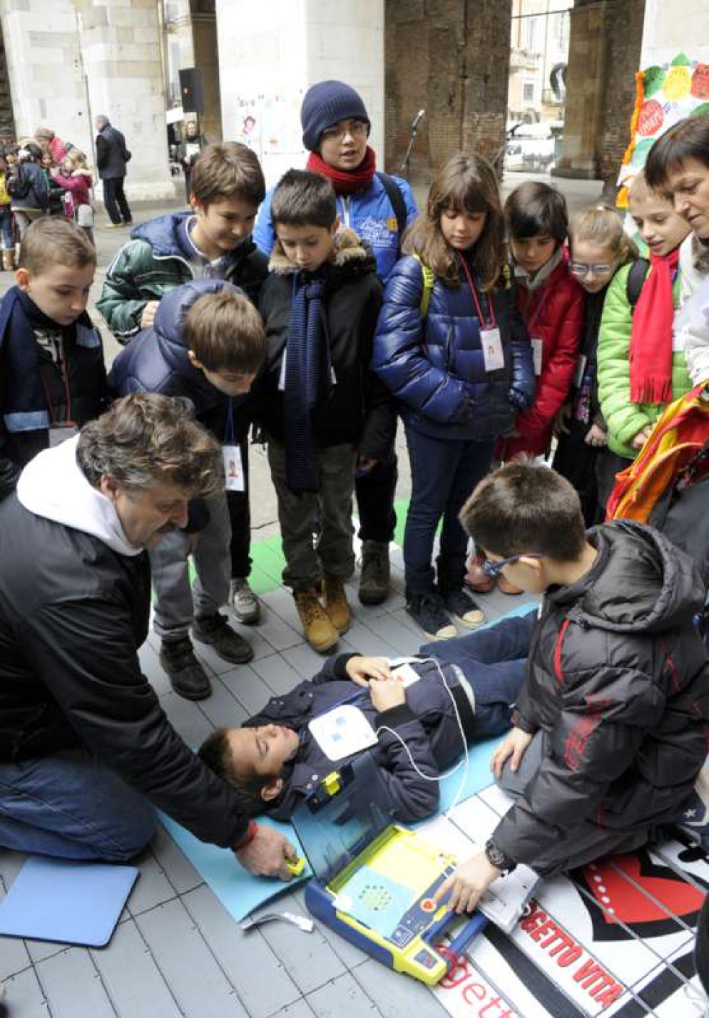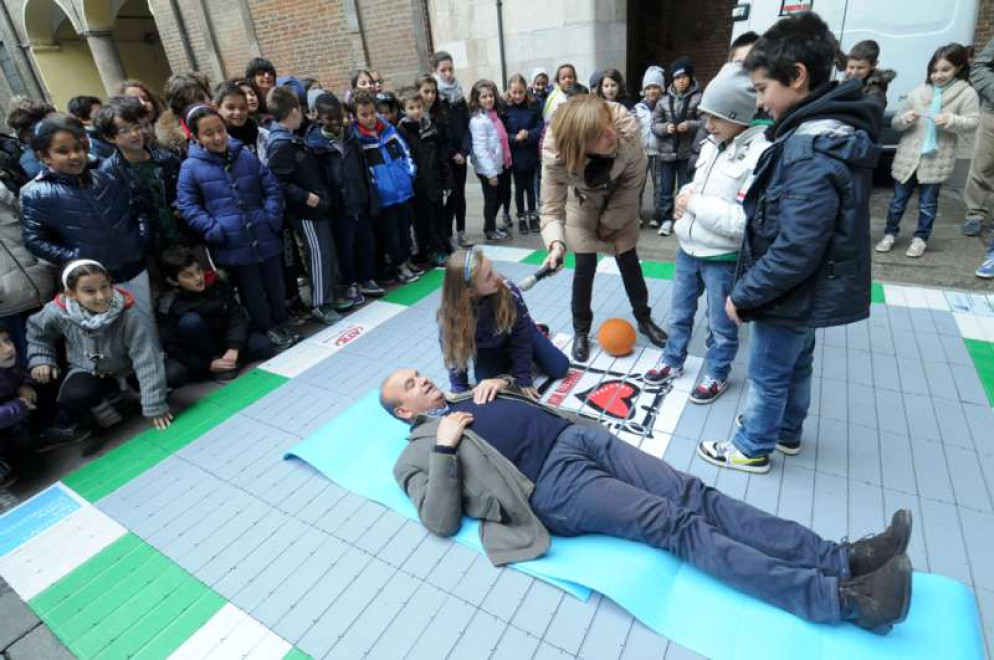 Alle 10.30 circa, i bambini – uno per ogni classe – si alterneranno nella lettura di messaggi riguardanti l’articolo 24 della Carta dei Diritti dell’Infanzia (sul diritto alla salute), quindi avrà luogo un’animazione curata dagli alunni della scuola De Gasperi sul primo soccorso a persone con problemi cardiaci, mentre i volontari di Progetto Vita attueranno un’iniziativa di formazione sullo stesso argomento.