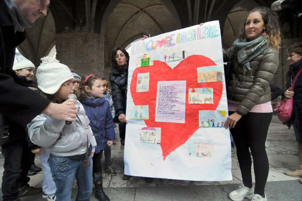 A seguire, il fulcro della manifestazione si sposterà in piazzetta Pescheria – solo in caso di pioggia battente, nel salone di Palazzo Gotico – dove alle 10 si riuniranno le classi delle scuole dell’infanzia e primarie partecipanti all’iniziativa, cui verrà rivolto il saluto del sindaco Dosi, di Lidia Pastorini in rappresentanza del Comitato provinciale Unicef, della responsabile di Progetto Vita Loredana Francavilla, di un rappresentante del Consiglio comunale dei Ragazzi e delle Ragazze, nonché dell’assessore Beltrani.