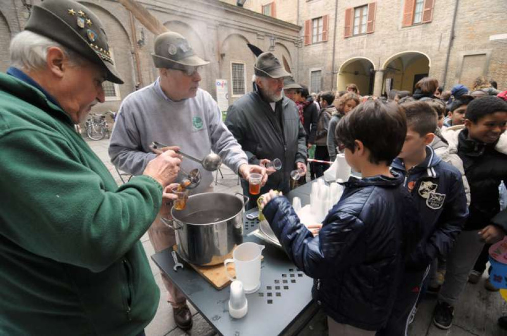 Pausa rifocillante con il the caldo distribuito dall’Associazione Alpini, quindi andrà n scena la rappresentazione di coreografie artistiche dell’associazione culturale Teriscore sul tema dei diritti e, in chiusura, alle 11.30 circa, l’inno nazionale cantato da tutti gli alunni.
