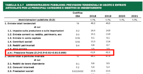 Contratto di governo: “Il contesto rende necessaria l’adozione di coraggiose e rivoluzionarie misure di riforma, nell’ottica di una riduzione del livello di pressione fiscale“. Aggiornamento quadro economico pubblicato dal Mef: la pressione fiscale aumenterà di 0,4 #anelloalnaso pic.twitter.com/TvQP34HA1K