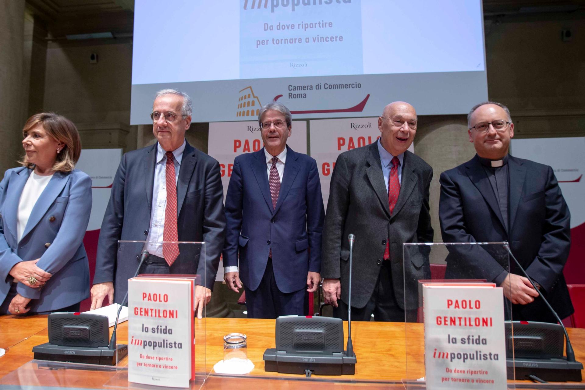 Padre Antonio Spadaro alla presentazione del libro di Paolo Gentiloni, "La Sfida Impopulista". Da sinistra: Maria Latella, Walter Veltroni, Paolo Gentiloni, Paolo Mieli e Antonio Spadaro.