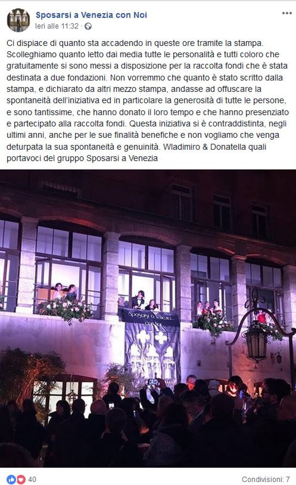 In quanto a Sposarsi a Venezia con noi sul sito da tempo si poteva leggere: "Sposarsi a Venezia … con Noi è la rassegna dedicata al Pianeta Sposi, alla sua XXIVema edizione, ideata da Wladimiro Speranzoni & Donatella Mola, che quest’anno sarà ospitata presso il Complesso dell’Ospedaletto (Barbaria de le Tole, Castello 6691) grazie a I.R.E. e Fondazione Venezia Servizi. La rassegna apre gratuitamente al pubblico nei giorni di sabato 16 e domenica 17 marzo 2019, dalle ore 10.00 alle ore 19.00".